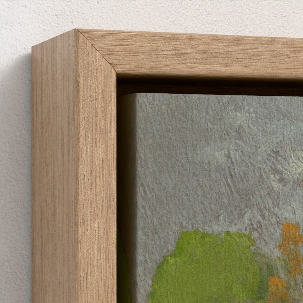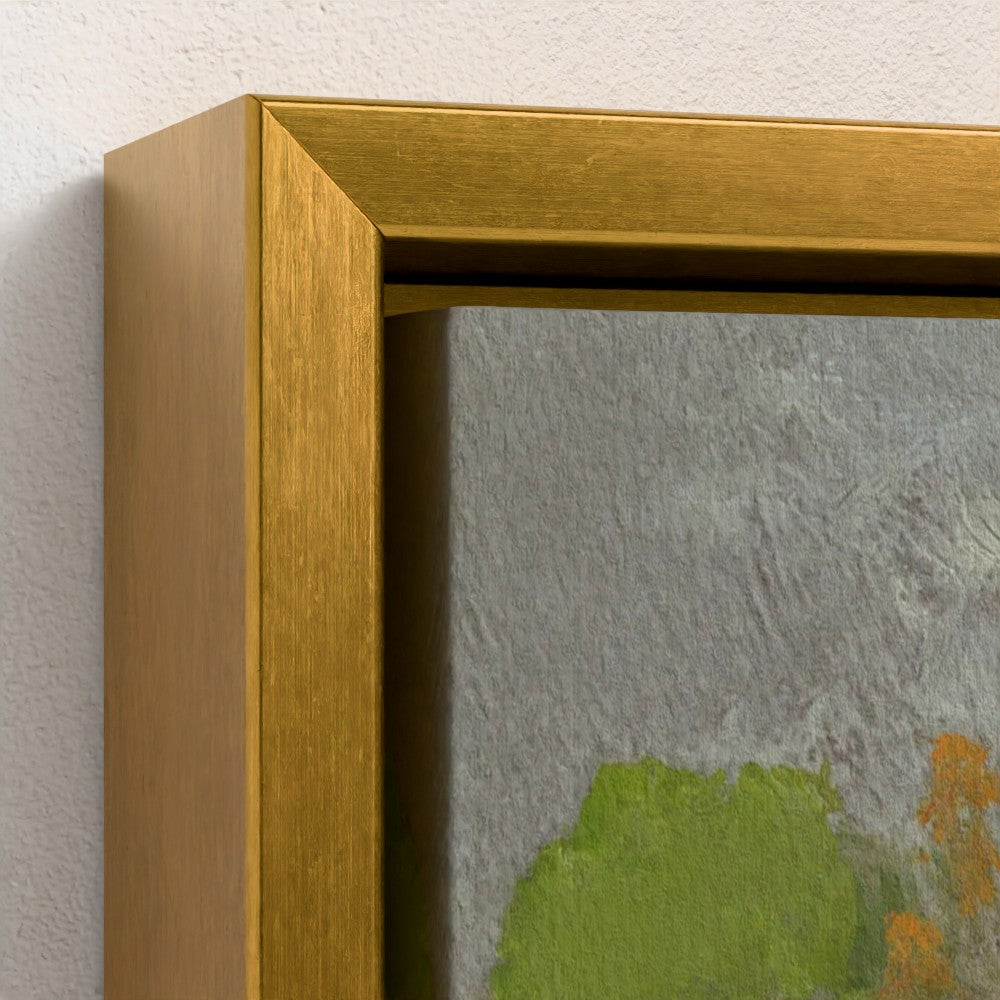 Soft brushstrokes of golden, green and amber tones highlight the changing season.