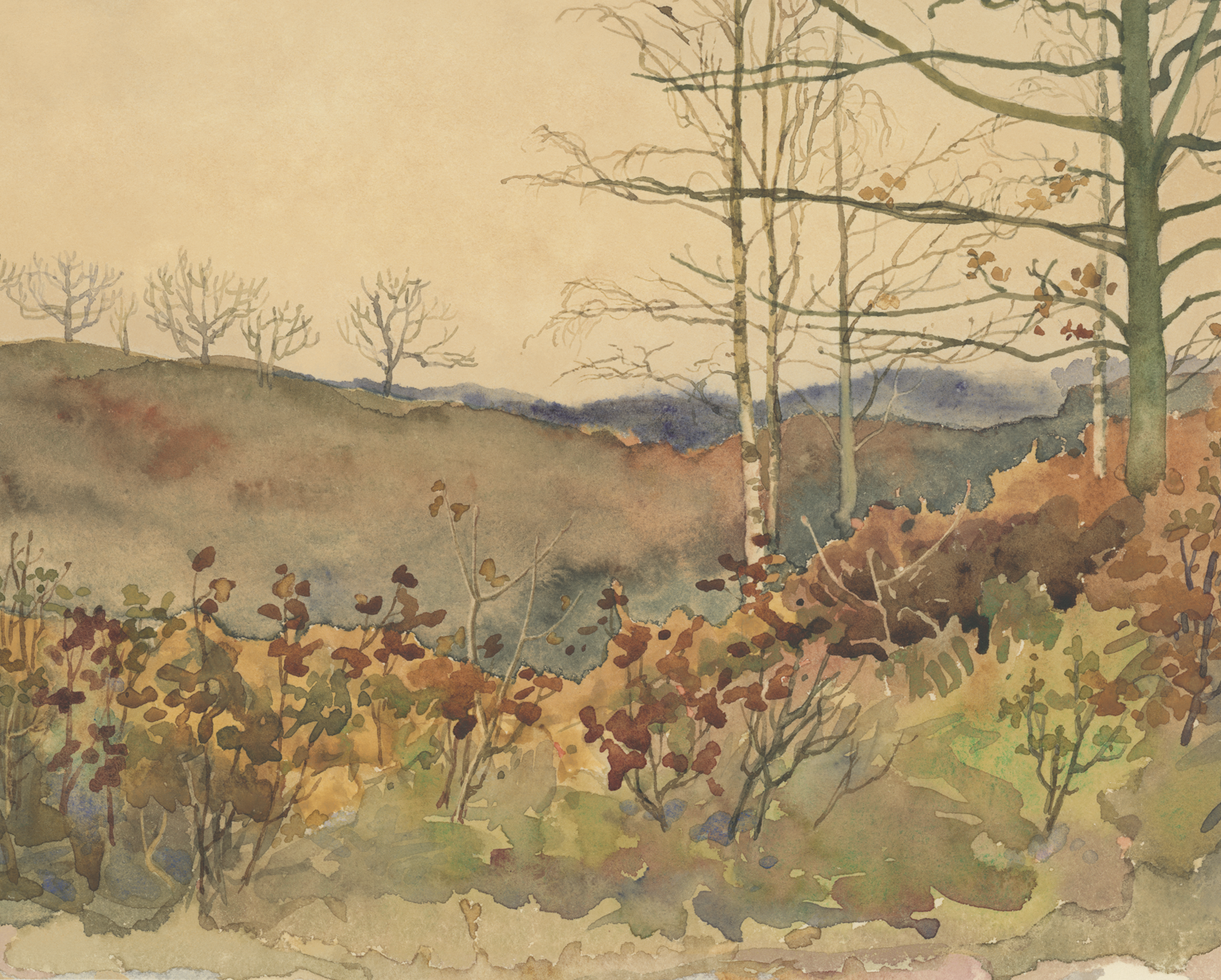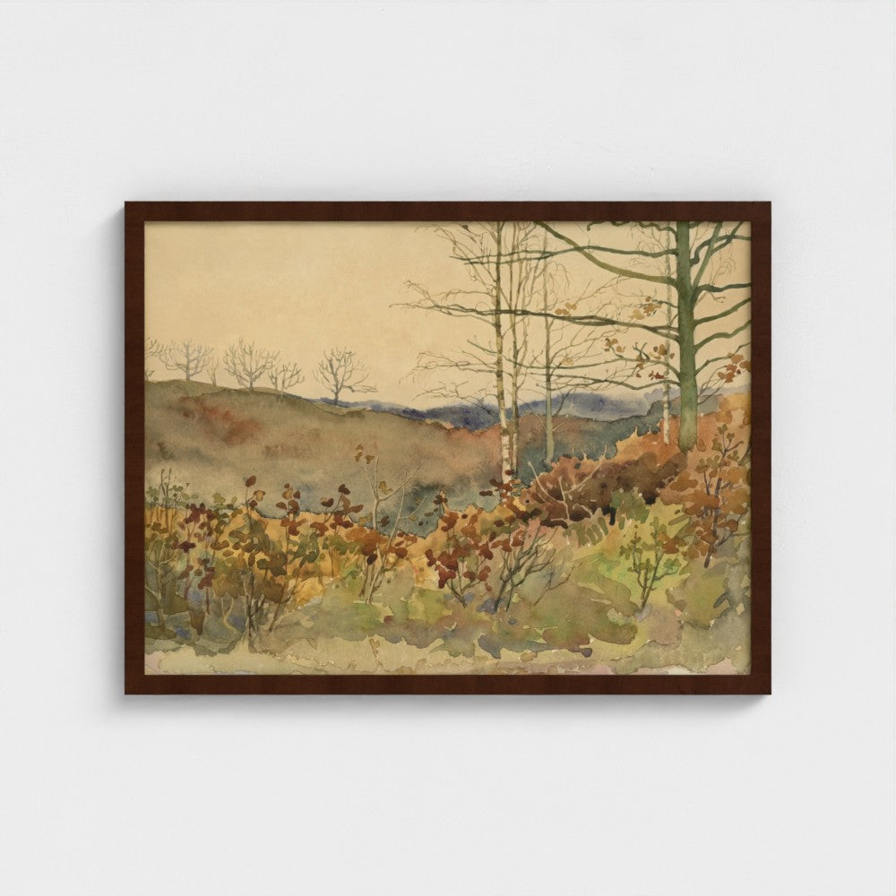 Bring the quiet beauty of the changing seasons into your home with this evocative landscape. Subtle earthy tones and soft brushwork capture the essence of the winter season.
